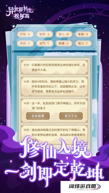 异世界转生模拟器渡劫期: 1、第一次雷劫:元婴破丹注入,金丹加大死撑,化神丹药悟道引气元婴炼虚大道法度,合体散功。 2、第二次雷劫:练气 8,就地打坐,游走全身。 3、第三次雷劫:家境>80丹药,其他就阵法(好像吃体质,具体没测出来)。 4、第四次雷劫:必须要家境,家境30以上需要发明家天赋选避雷针。没发明家就需要家境80以上,如果走了白洛竹女主线就只需要家境50以上。 5、第五次雷劫:撤离(敏捷>100)门派(魅力>100)。 6、第六次雷劫:化神90,准备丹药,悟道丹,引气丹,淬炼元婴。 7、第七次雷劫:建议去救但要求力量、体质>150,智慧没有强制要求,基本保持在120以上就行,不救基本第八次雷劫过不了 8、第八次雷劫:救了要求1000修为,不救要求1400修为(我试了好几次都没达到)。 9、后续剧情:不问he,询问be,爱别离(男主死),求不得(男女主一起死)。
