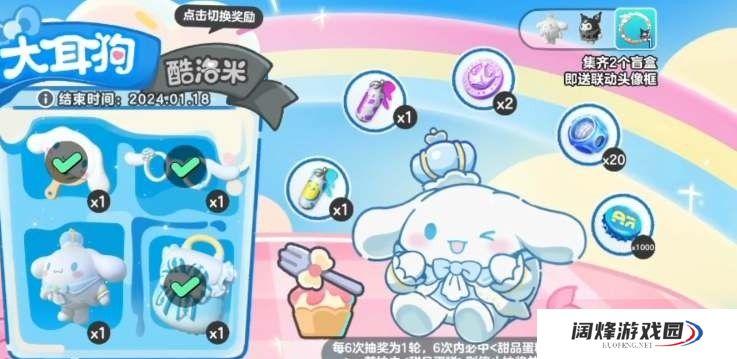 2、活动期间玩家通过签到还可以获得躲猫猫昵称框,完成活动可获得酷洛米派对套装、大耳狗帽子、大耳狗家具等奖励。