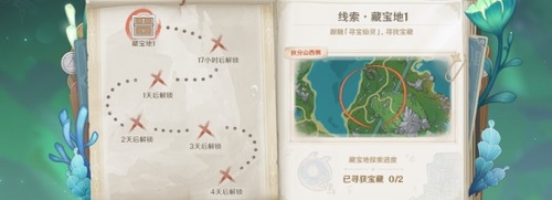 原神秘宝迷踪藏宝地点,每天都会解锁新的位置,你只要等刷新,看攻略就能快速搞定了,根本不用花多少时间来寻找宝藏。