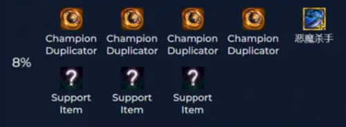 2、装备拆卸器+金铲铲冠冕*2+死亡之刃+10金币 3、装备拆卸器*2+光明死亡之刃+光明无尽+死亡之刃+30金币 二、10%概率 1、90金币 2、装备拆卸器+装备重铸器+金铲铲冠冕+奥恩装备*3+10金币 3、装备拆卸器*2+光明狂徒+光明泰坦+金铲铲冠冕+五费棋子 三、8%概率 无限爆金币(2回合150金币)+概率爆英雄复制器