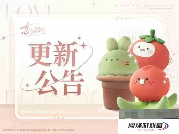 「世界深处」更新 1、12月2日更新后,世界深处新剧情「恶作」更新。 2、踏入街巷的阴影中,更多深空世界不为人知的秘密,在你面前展开。 「芯核狩猎」双倍掉落开启 1、12月16日上午5:00~12月23日上午4:59,「芯核狩猎」限时双倍掉落开启。 2、活动期间,每日前10次芯核狩猎,可在已有奖励外额外获得一次通关奖励,双倍次数每日5:00重置。 3、10次双倍次数在所有关卡中都生效,猎人可以自由选择想要获取的芯核。 4、主线分线五星思念「祁煜·秘焰沸腾」永久上架「许愿商店」,使用「时光星尘」即可兑换。 修复部分显示问题。 修正部分音频与文本错误。 三、维护补偿 维护结束后,可在游戏内邮箱查收「钻石*200、极空许愿券*1」的维护补偿,邮件有效期至12月5日上午4:59,通关主线「于深空之下」1-9开启邮箱功能后即可领取。