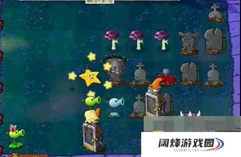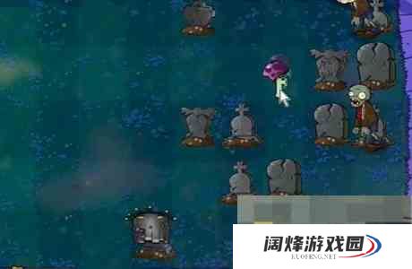 2、先在右侧种植一个小喷菇,使用噬墓者清理墓碑。