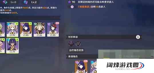 五、第五幕 1、阵容推荐九条裟罗+芭芭拉+风挂件+挂件 2、祝福选择扩散·原态、风或雷元素角色邀请 3、敌人选择纳塔勇士>流血狗