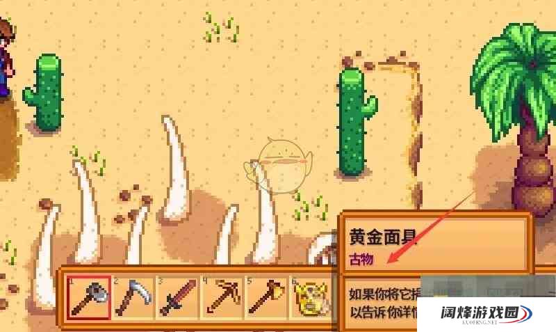 探索《星露谷物语》的神秘沙漠,挖掘黄金面具!只需500金解锁沙漠之旅,用锄头挖掘蚯蚓,就有机会获得珍贵的黄金面具。捐献给博物馆,丰富你的古物收藏。