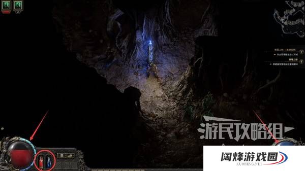 屏幕左下角的红球是角色的血量(生命值),右下角的蓝球是魔力值。
