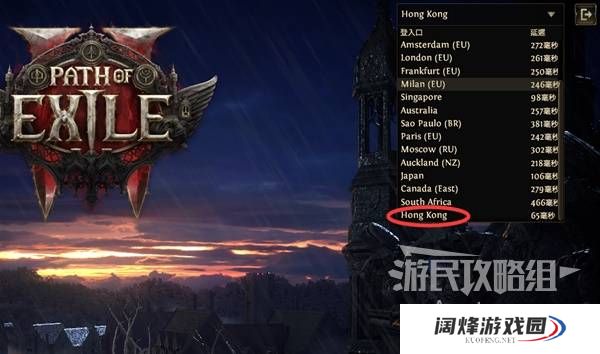 在屏幕右上角选择服务器,建议选择延迟最低的服务器。游戏加速器节点也最好选择一样的地区。