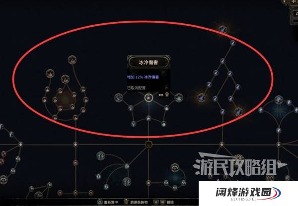 天赋树有个特点,就是最外圈的天赋都以特定的形状来直观地表示效果,比如下图的火焰、冰霜、闪电类天赋。看准自己需要的天赋后,就注意慢慢往那边加点,一点点连线到那里去。