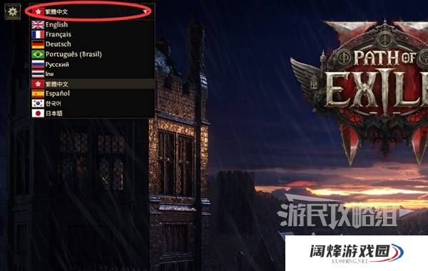 在屏幕左上角选择语言,游戏自带繁体中文。